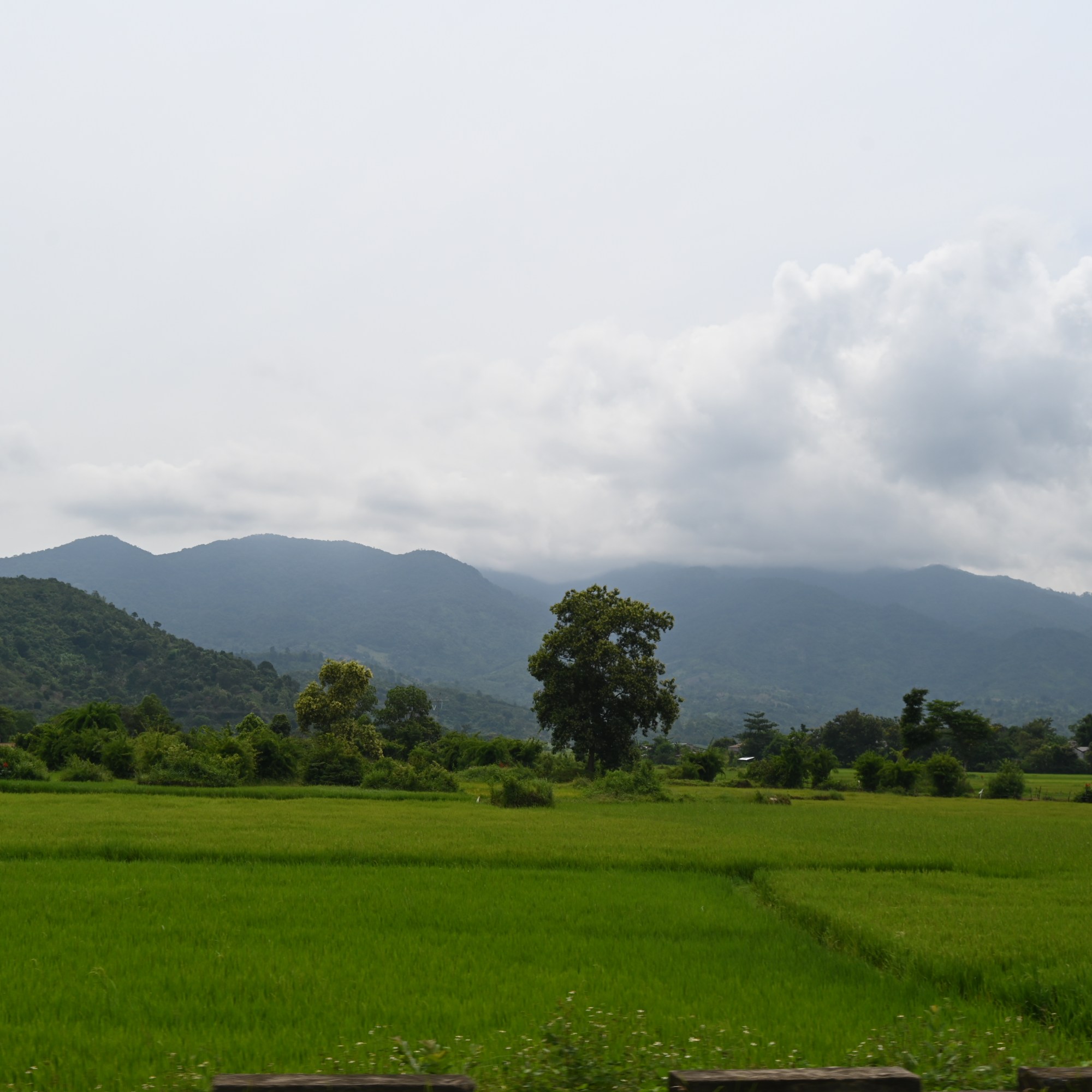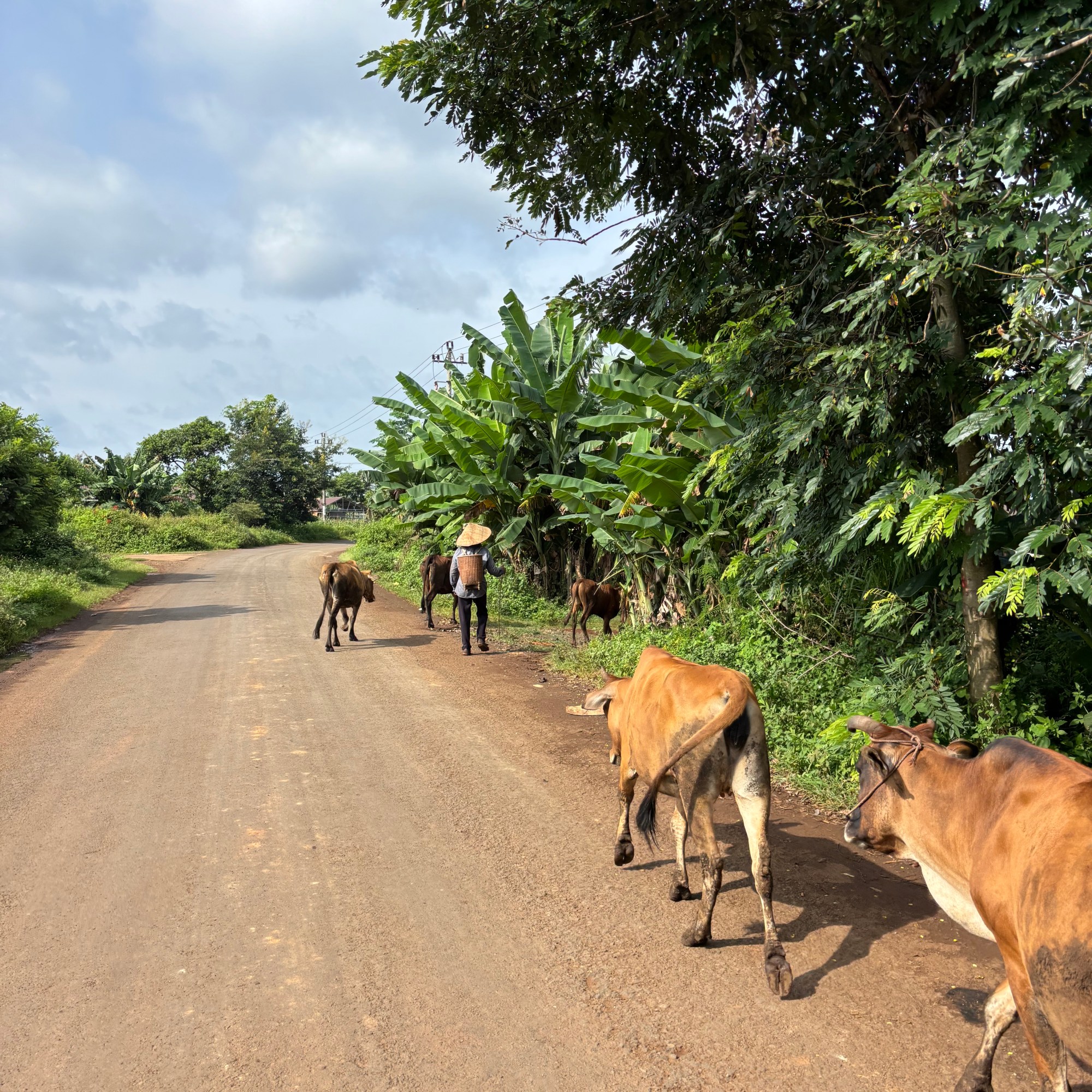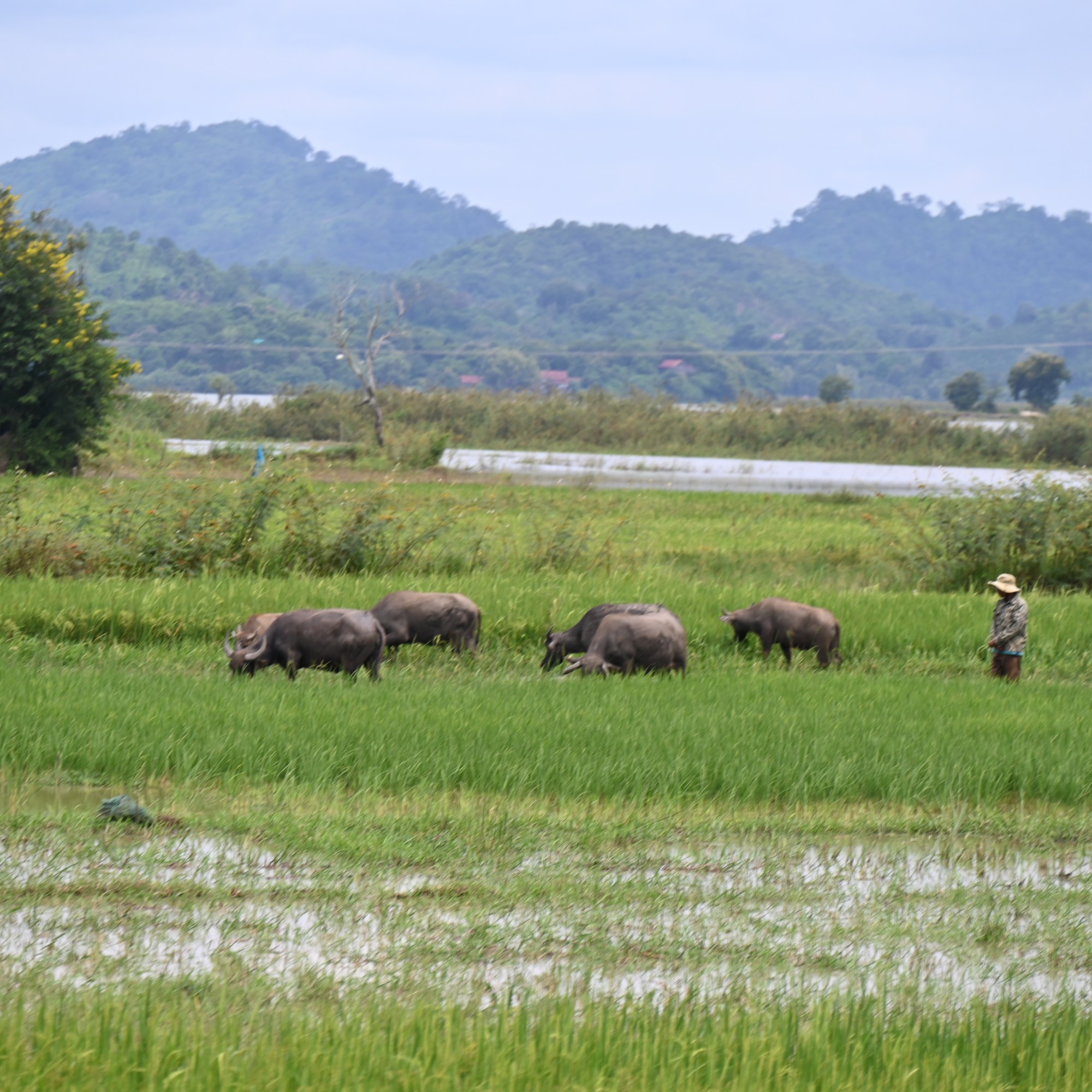 We took an early start because again we had a long road ahead of us. And a very nice road it was. After leaving the coffee and pepper farms behind we drove through deep green rice fields surrounded by green mountains. I love the smell of green rice when we drive along the young green rice fields.