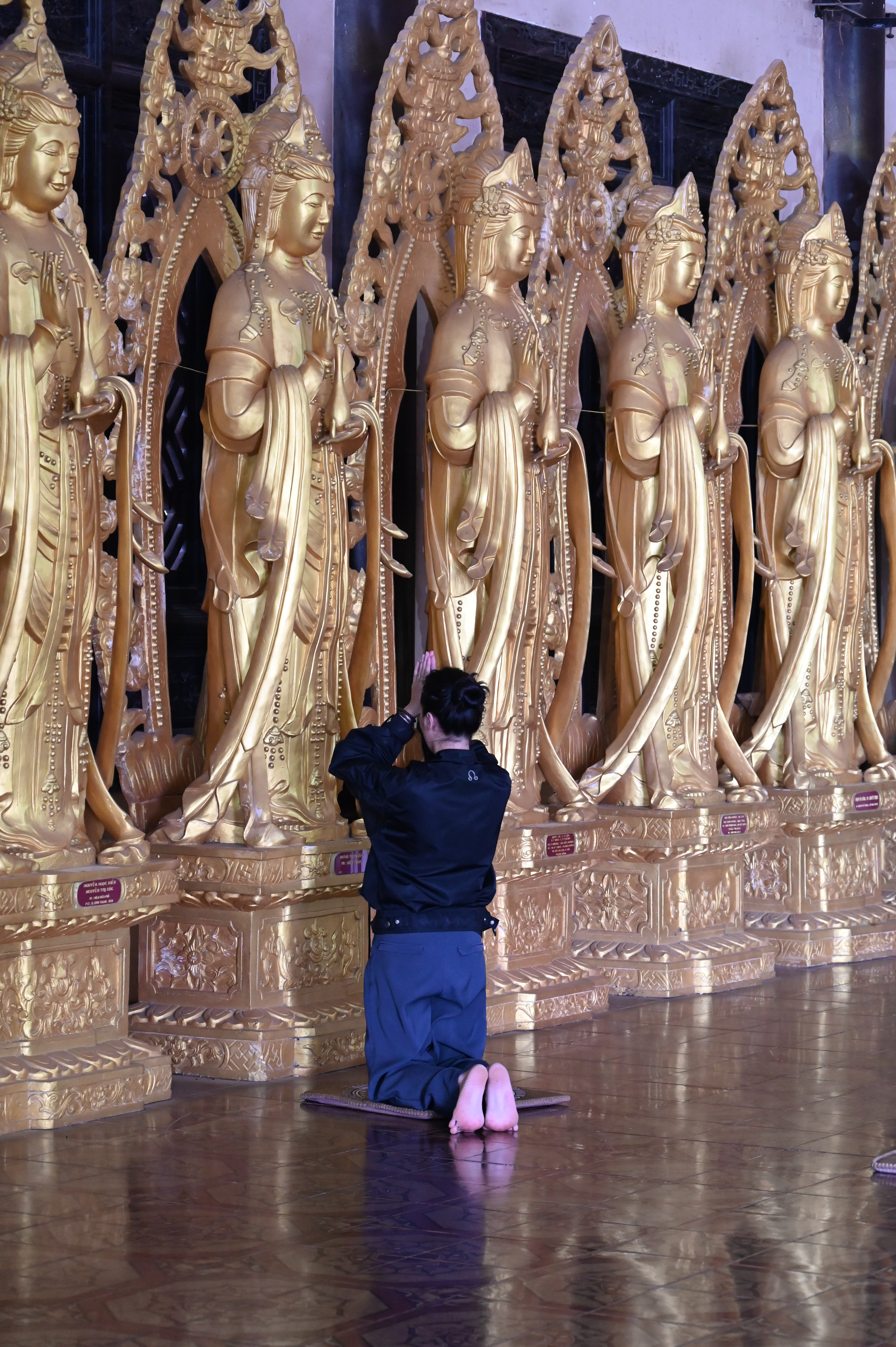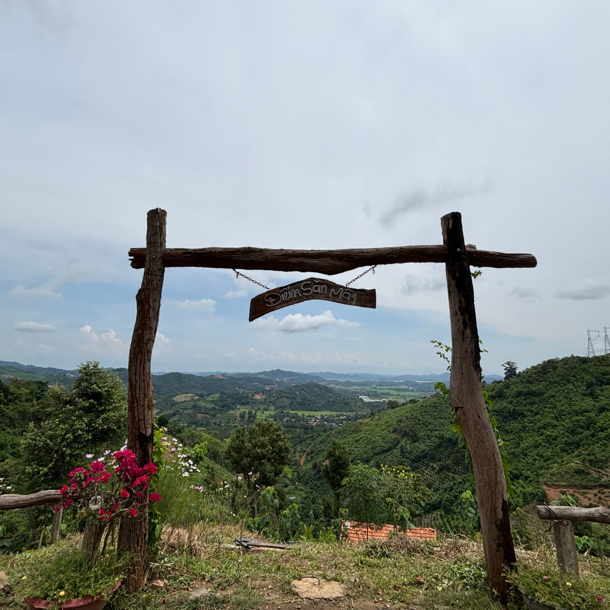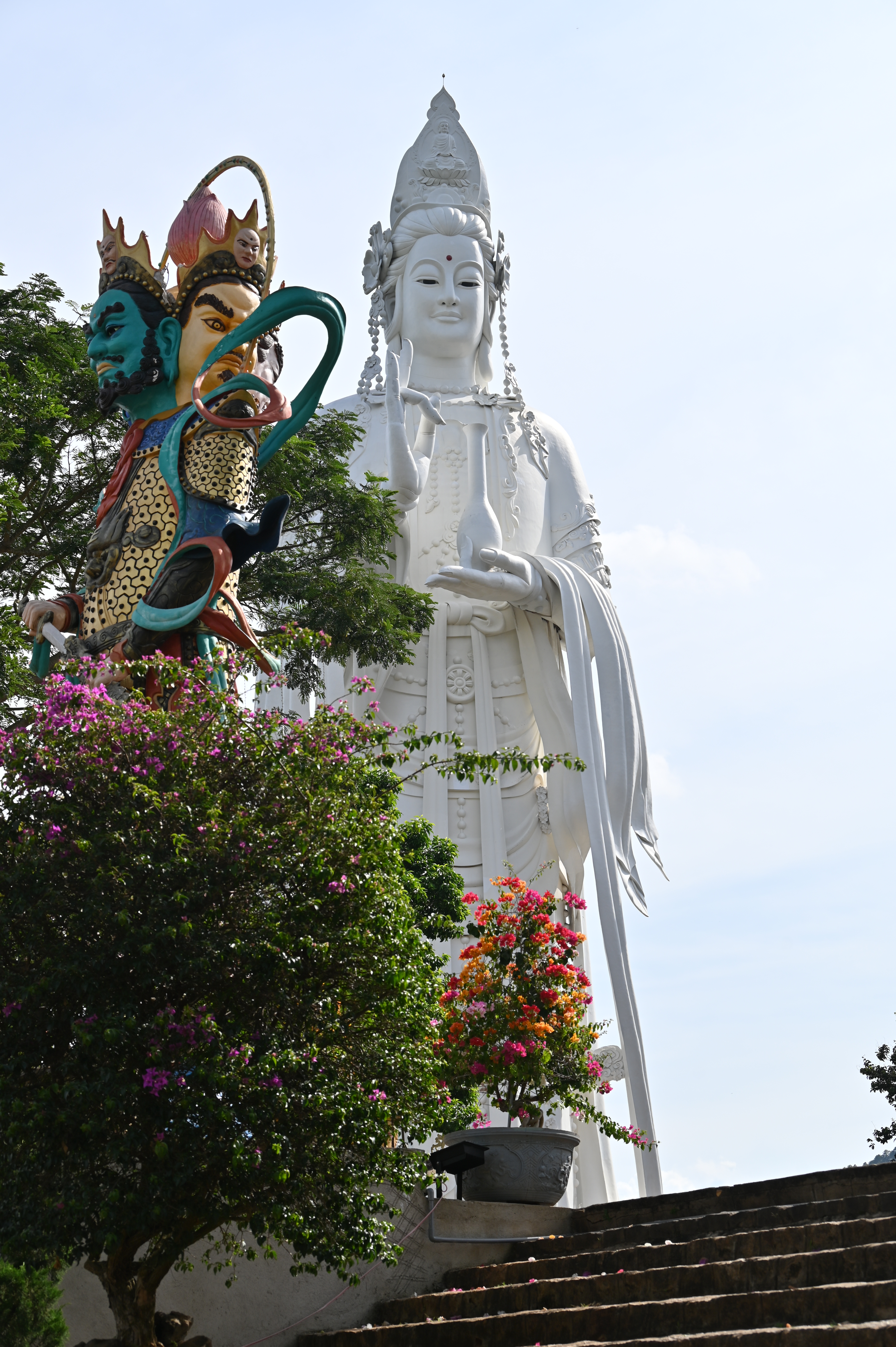 Two hours before Da Lat we took a left onto a more quiet road with less trucks and busses. After an hour we made a stop at Linh An pagoda with its 71 m high Quan Am (also known as Guanyin or Bodhisattva Avalokiteshvara) statue, the goddess of compassion. The statue is hollow and inside you can climb all the way up into its head via 250 steps. Next to the pagoda the elephant waterfalls fall down from 30 m high, and you can make beautiful pictures from within the Quan Yin statue. I think the temple is run by nuns and is known for its Zen Buddhism. We saw mainly Catholic Churches along the way, almost every smal village had one. The French missionaries were pretty successful converting the local population, mainly indigenous groups.