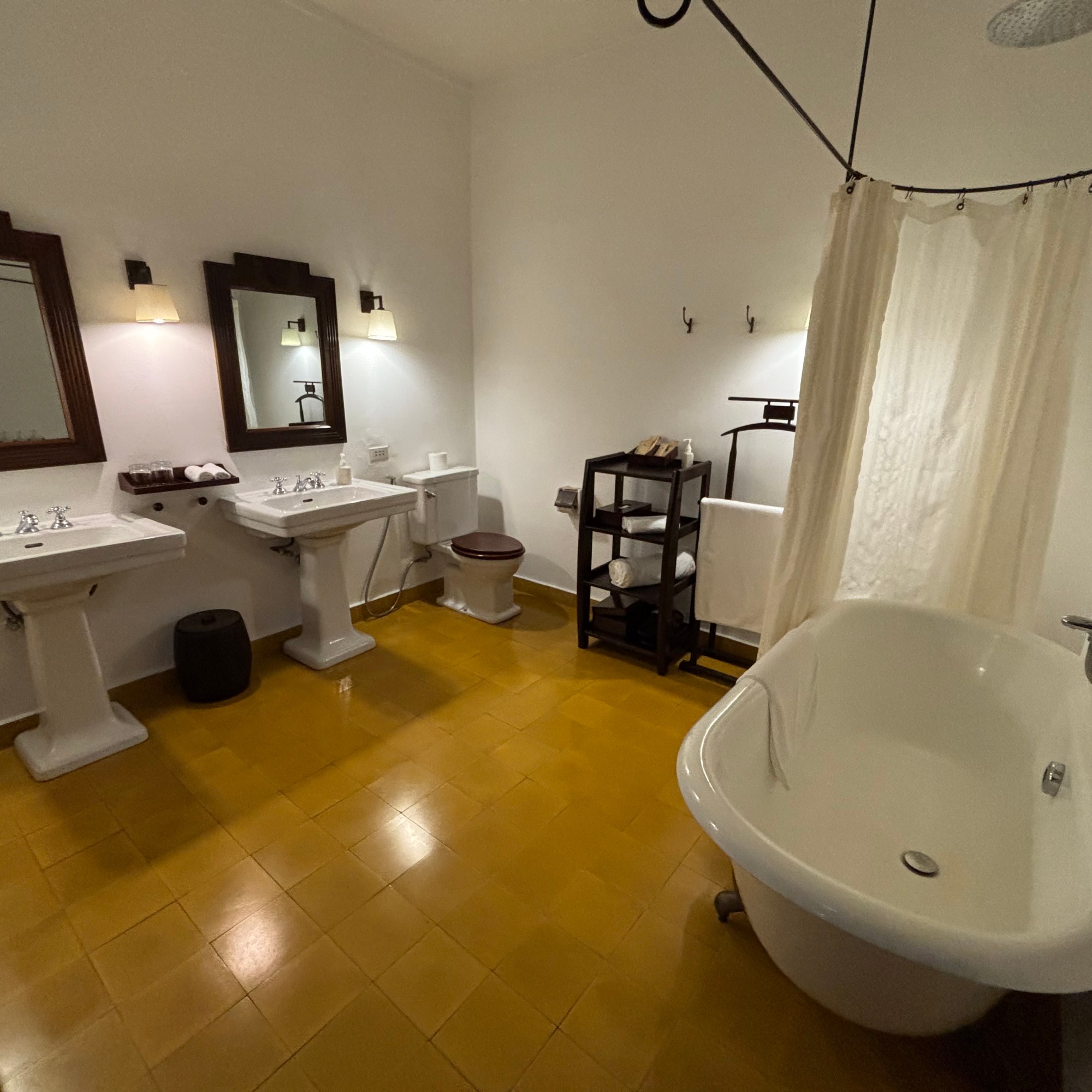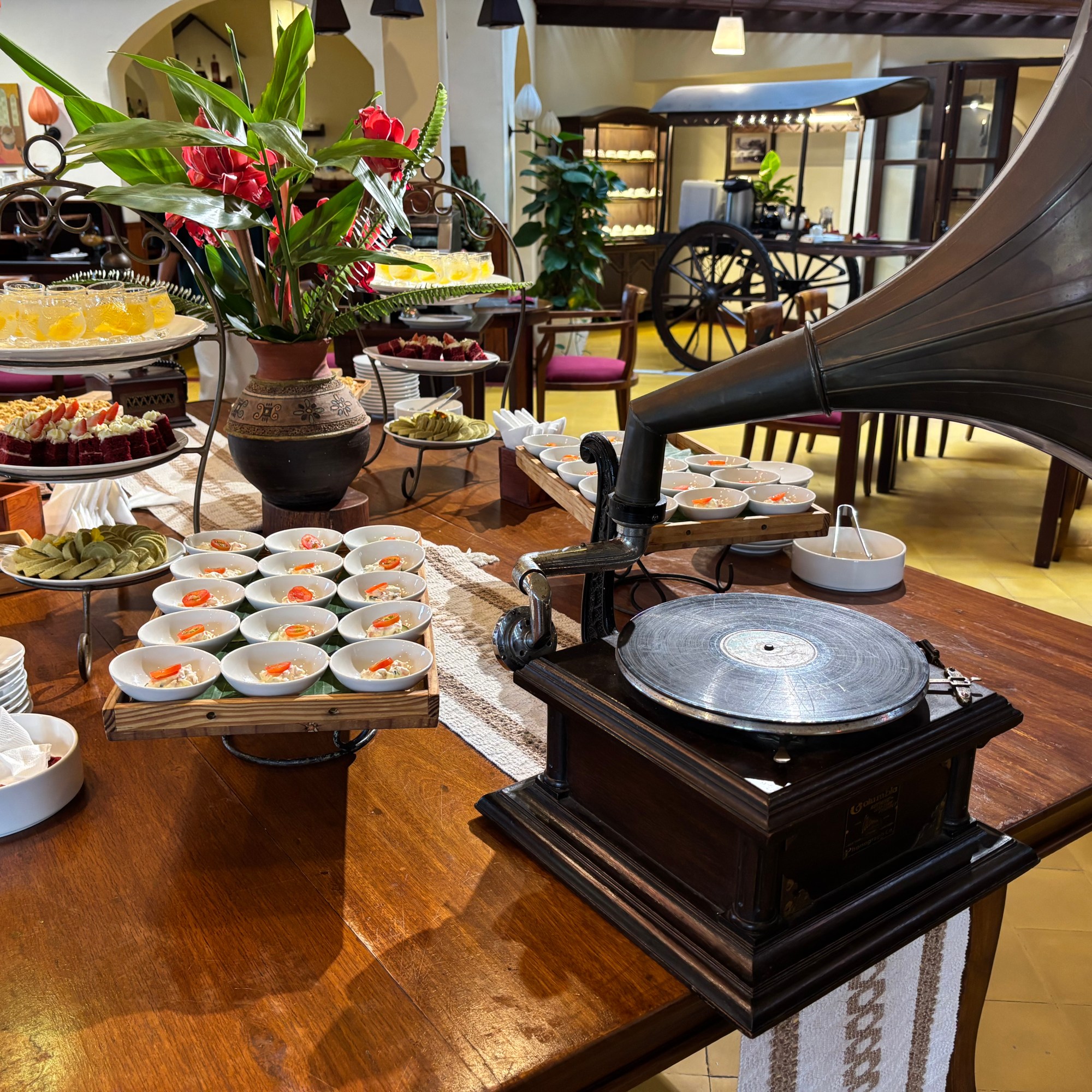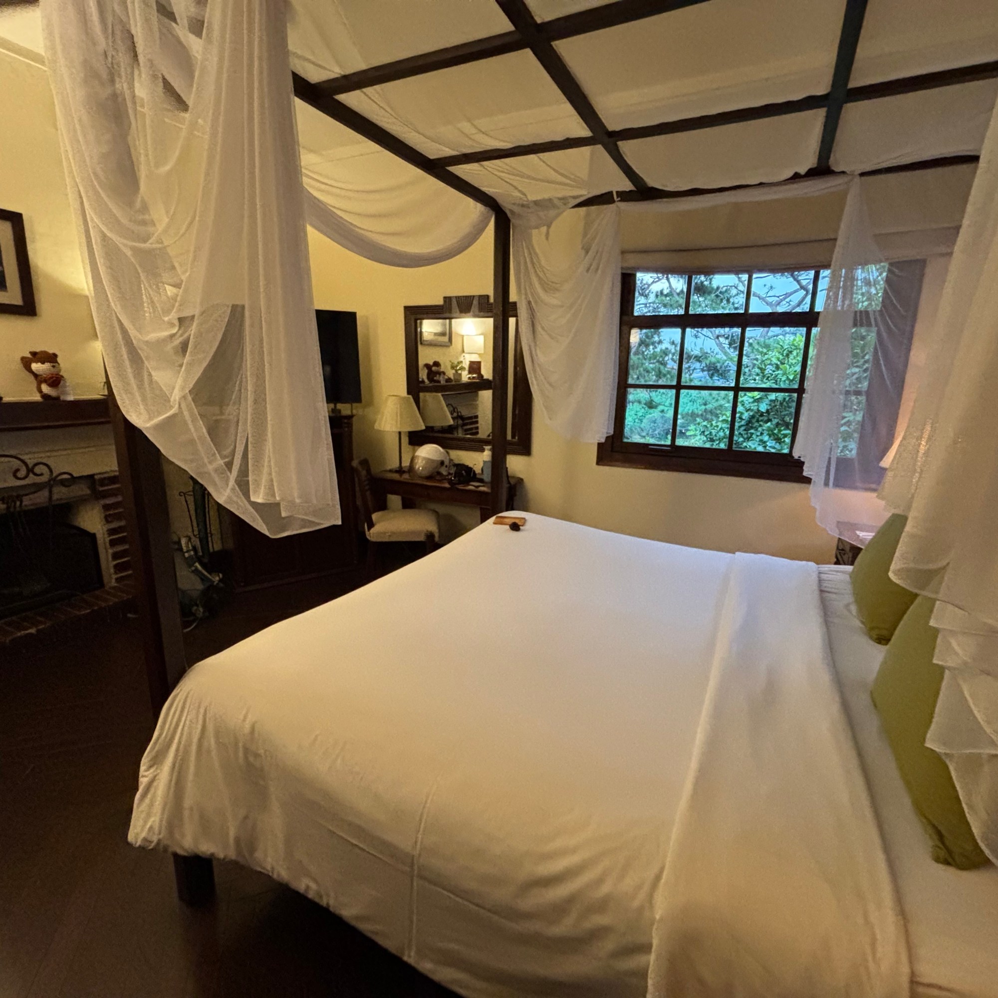 The rooms are simply beautiful set in old French colonial houses. We put on our swimsuits and walked over to the heated swimming pool. It just started to rain but because the water was nice and warm we had a swim in the monsoon rain and a dinner at the Petit Restaurant.